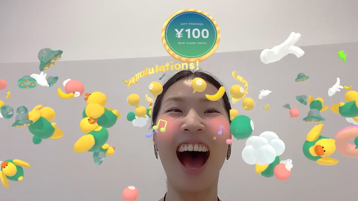 New Stand Tokyo ので体験が可能となっており、店内に設置された QR コードから AR フィルターを起動してルーレットにチャレンジ。その動画を Instagram でシェアすると、当たった賞品をその場でもらうことができます。