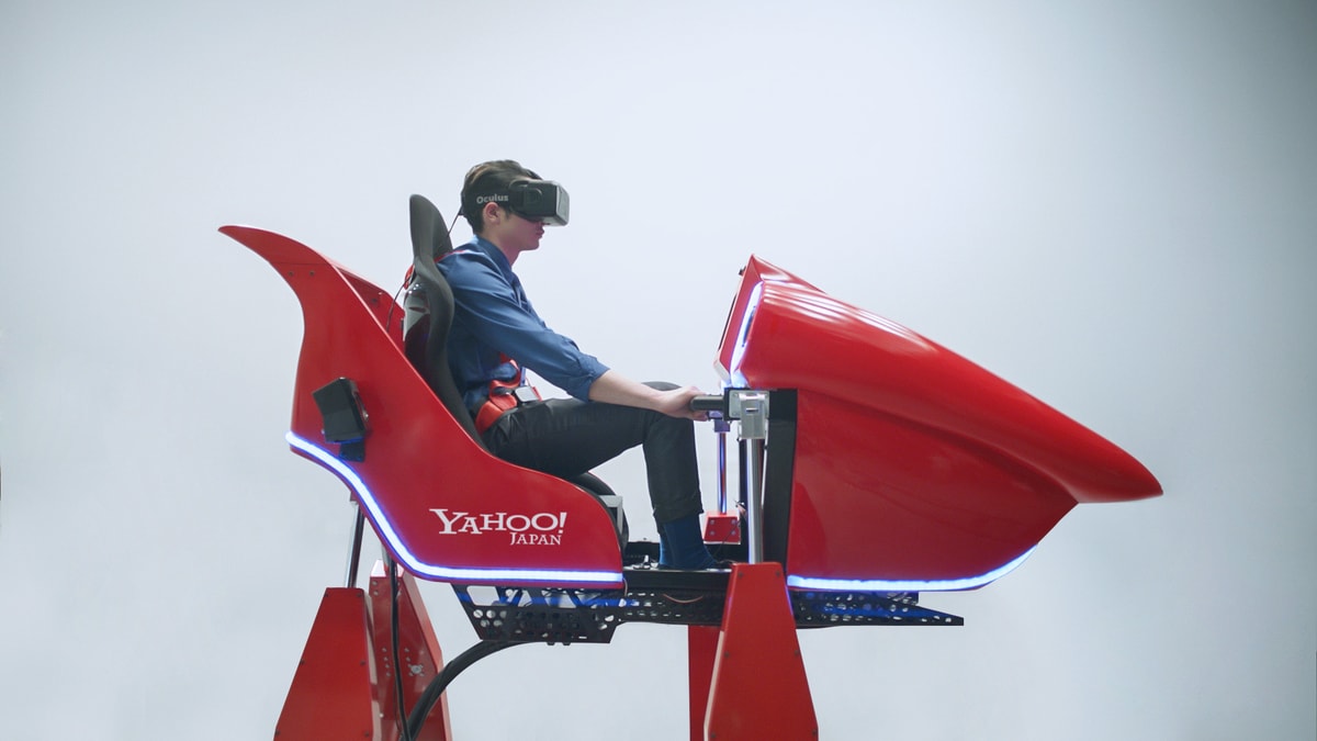 「ヤフー トレンドコースター」は、ソーシャルメディアの投稿を検索できる「Yahoo! 検索」の 「リアルタイム検索」で提供する投稿件数の推移グラフを、トレンド波形として独自に可視化したコースを体感する、新感覚のアトラクションです。視界 360 度のバーチャルリアリティ を楽しめるヘッドマウントディスプレイ「Oculus Rift」を装着し、ドライブシミュレーター「Motion-sim」に乗 ることで、まるでジェットコースターに本当に乗っているような感覚を味わえます。